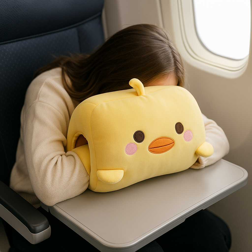 Travel feels shorter when you snuggle into a fluffy hug pillow.
